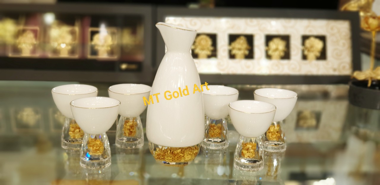 Sản phẩm gồm 01 bình và 06 ly được đựng trong hộp quà, túi xách sang trọng. Sự kết hợp giữa sứ cao cấp vẽ thủ công và pha lê vàng lá đưới đáy sẽ là một tuyệt phẩm để thưởng thức rượu. Thích hợp làm quà tặng sinh nhật cho sếp, bố.