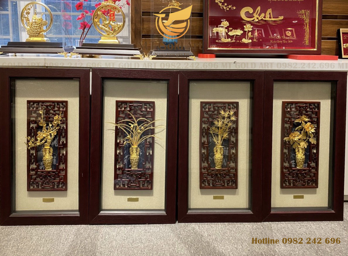 Với 4 loài hoa: mai, lan, trúc, cúc mỗi loài hoa mang một vẻ đẹp và ý nghĩa khác nhau. Kết hợp lại thành bộ tranh tứ quý xinh đẹp. 4 loài hoa này đều tượng trưng cho mùa xuân tươi đẹp, tặng bộ tranh tứ quý này cho phái nam dịp sinh nhật. Sẽ giúp họ ngạc nhiên và chắc chắn rằng rất vui sướng với bộ tranh với 4 loài hoa xinh đẹp này.