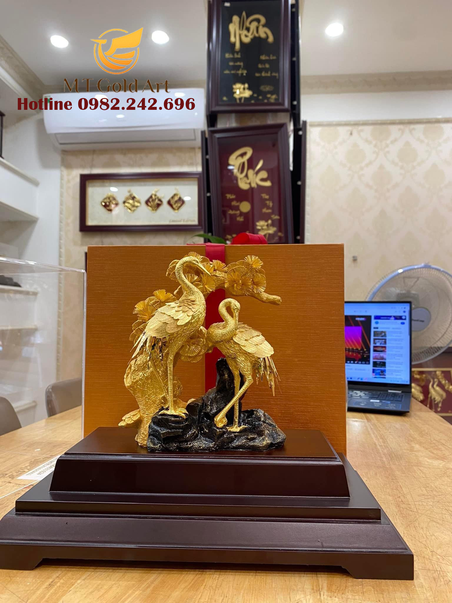 Bức tượng đôi chim hạc đứng trên cây tùng này tạo ra một tác phẩm cao cấp sang trọng và bắ mắt. Vì cây tùng là loài cây trường thọ, chim hạc là loài chim xinh đẹp, chịu thương chịu khó. Nên bức tranh này đa số được khách hàng lớn tuổi yêu thích. Bạn có thể mua tặng bố, sếp dịp sinh nhật.