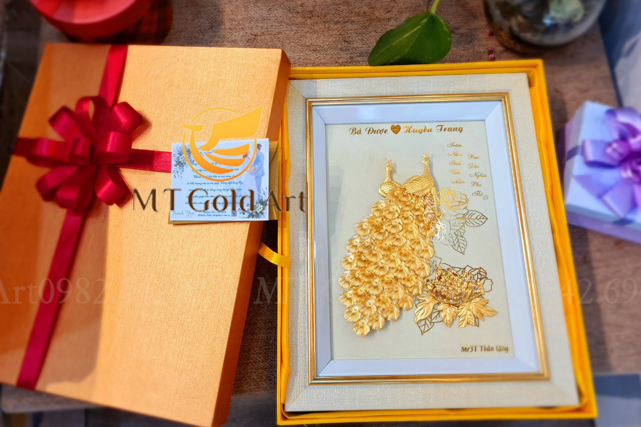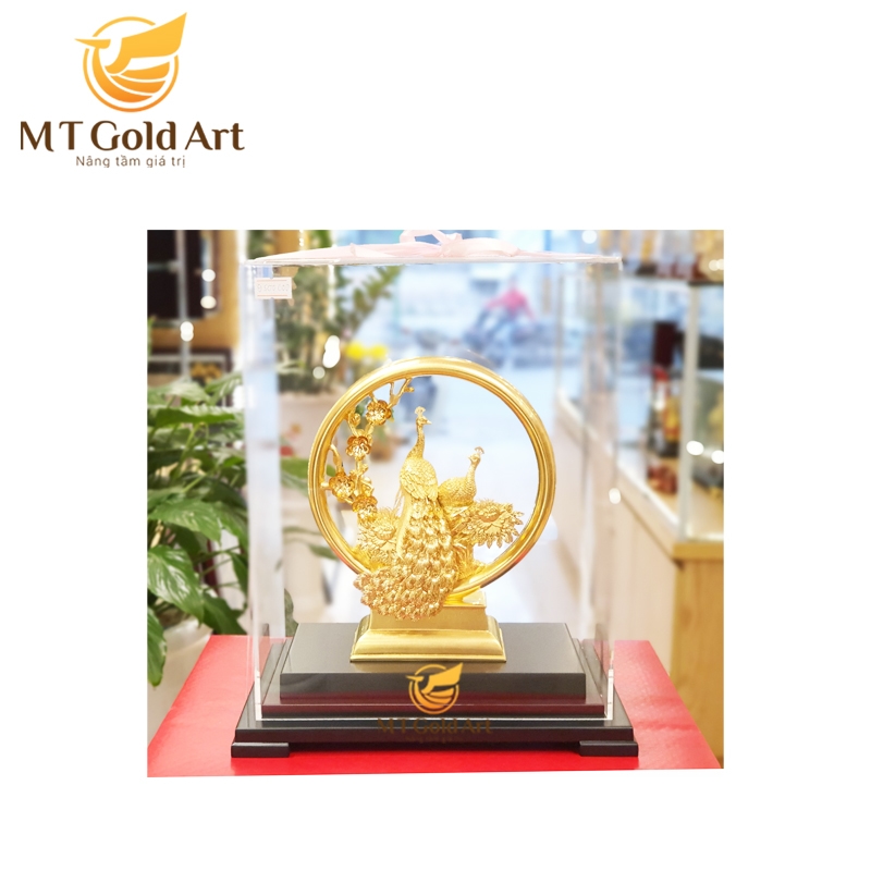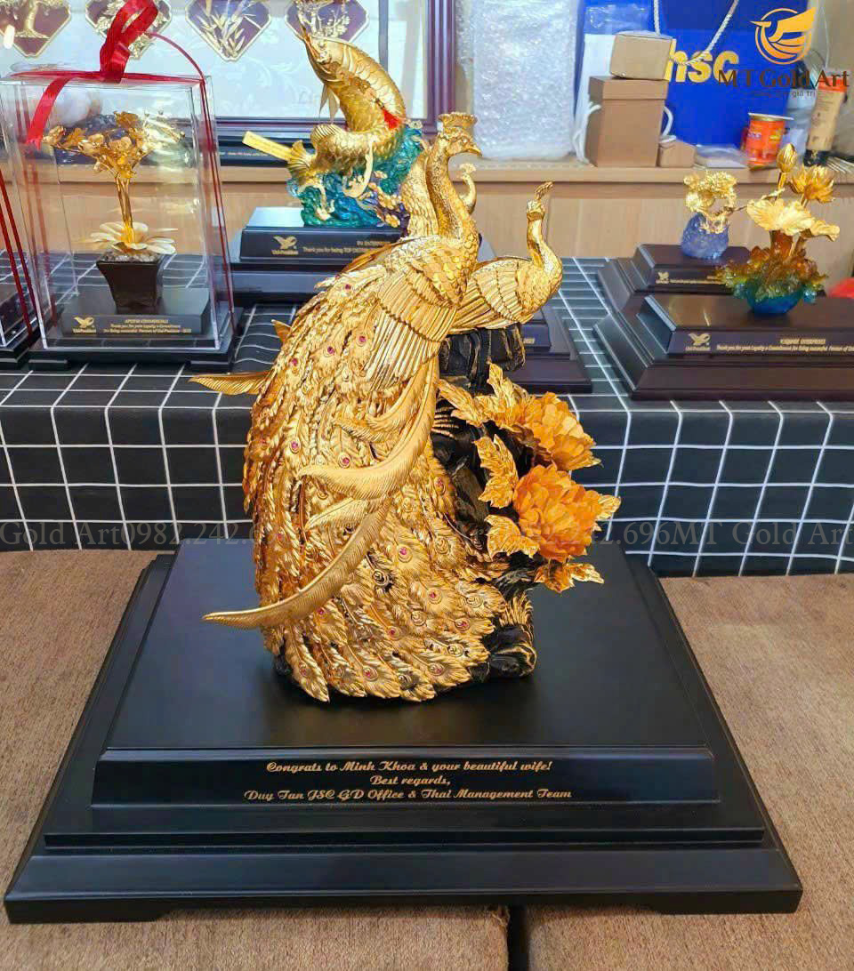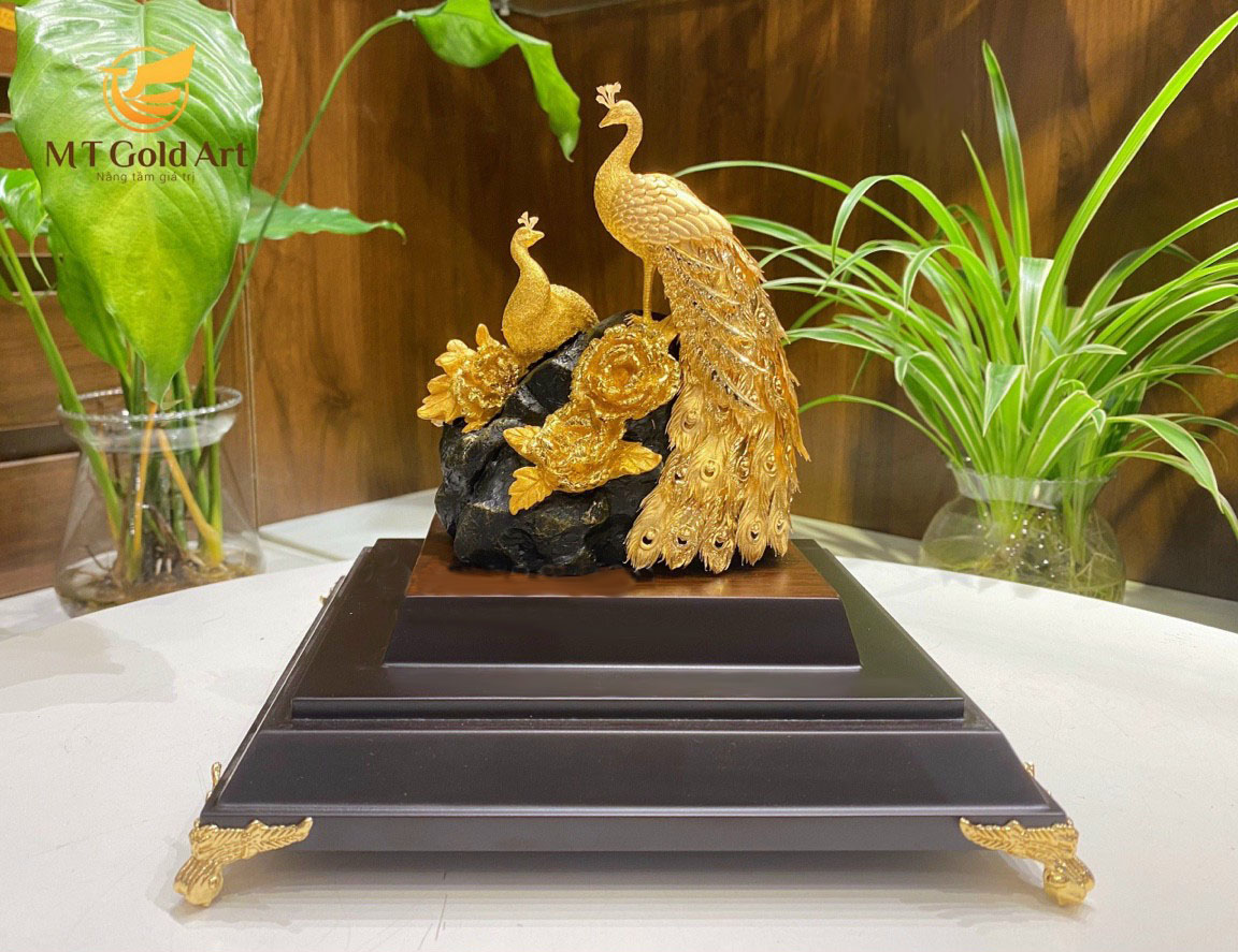 Tượng đôi chim công quấn quýt bên nhau biểu trưng cho hạnh phúc viên mãn, phú quý cát tường. Tượng đôi công dát vàng biểu trưng của hạnh phúc, là món quà sang trọng cao cấp và vô cùng ý nghĩa cho người yêu dịp kỷ niệm ngày yêu nhau, valentine….