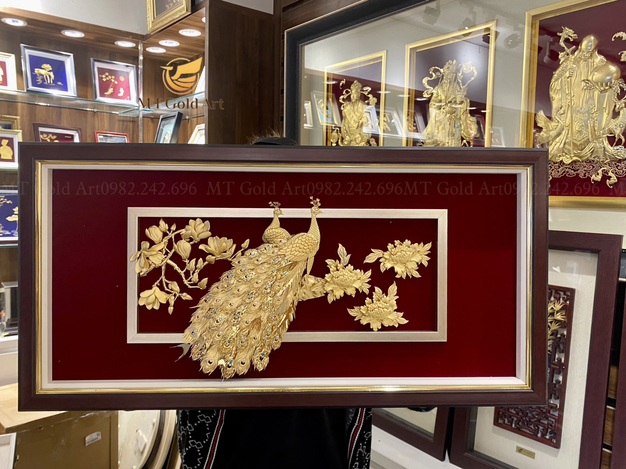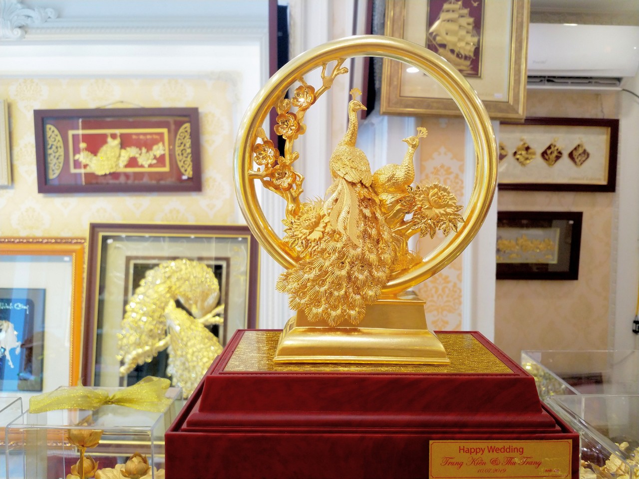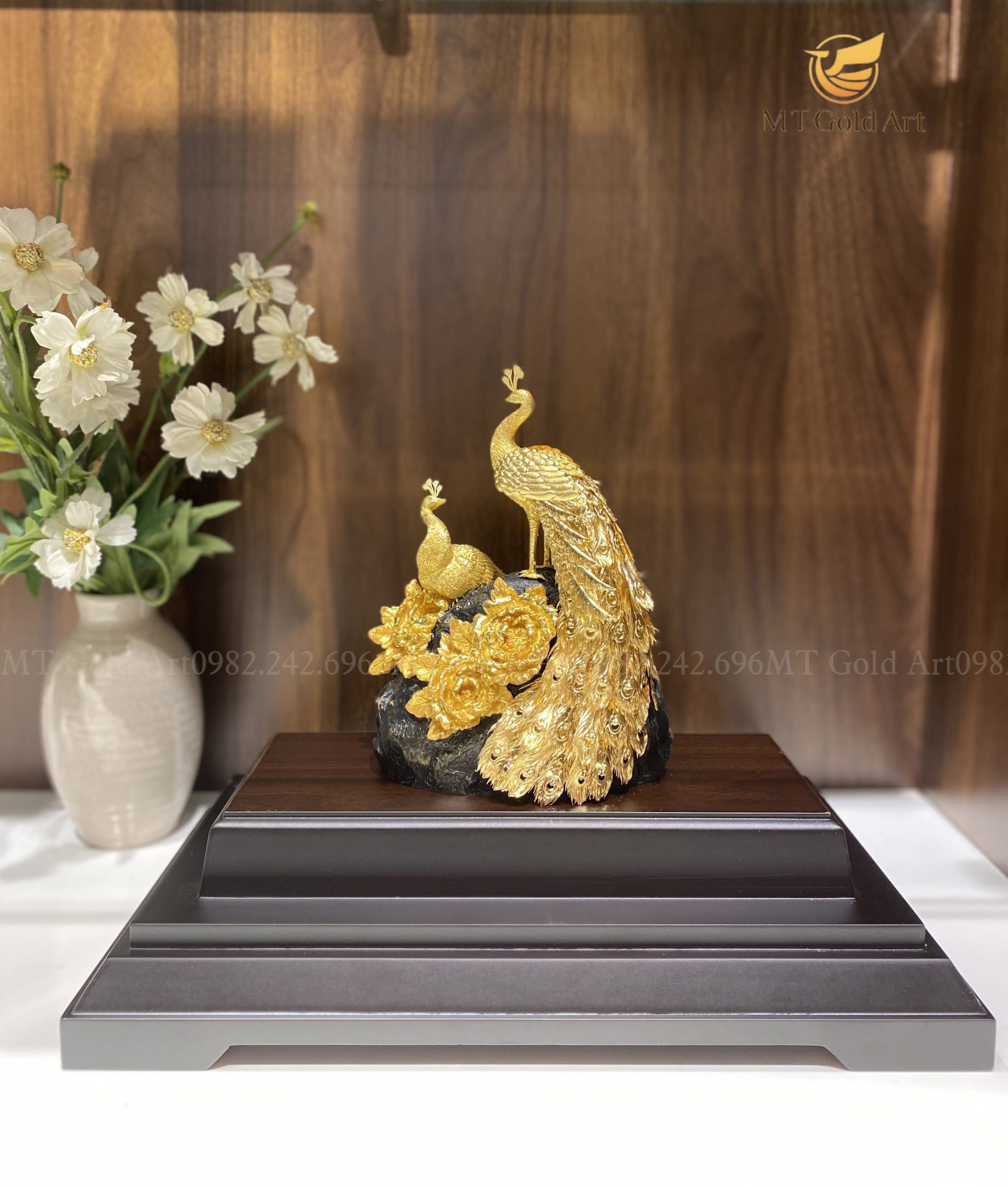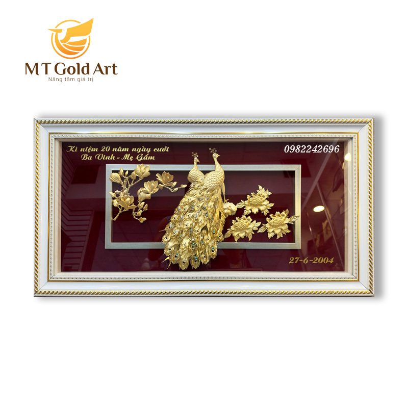 Tượng đôi chim công quấn quýt bên nhau biểu trưng cho hạnh phúc viên mãn, phú quý cát tường. Tượng đôi công dát vàng biểu trưng của hạnh phúc, là món quà sang trọng cao cấp và vô cùng ý nghĩa cho người yêu dịp kỷ niệm ngày yêu nhau, valentine….