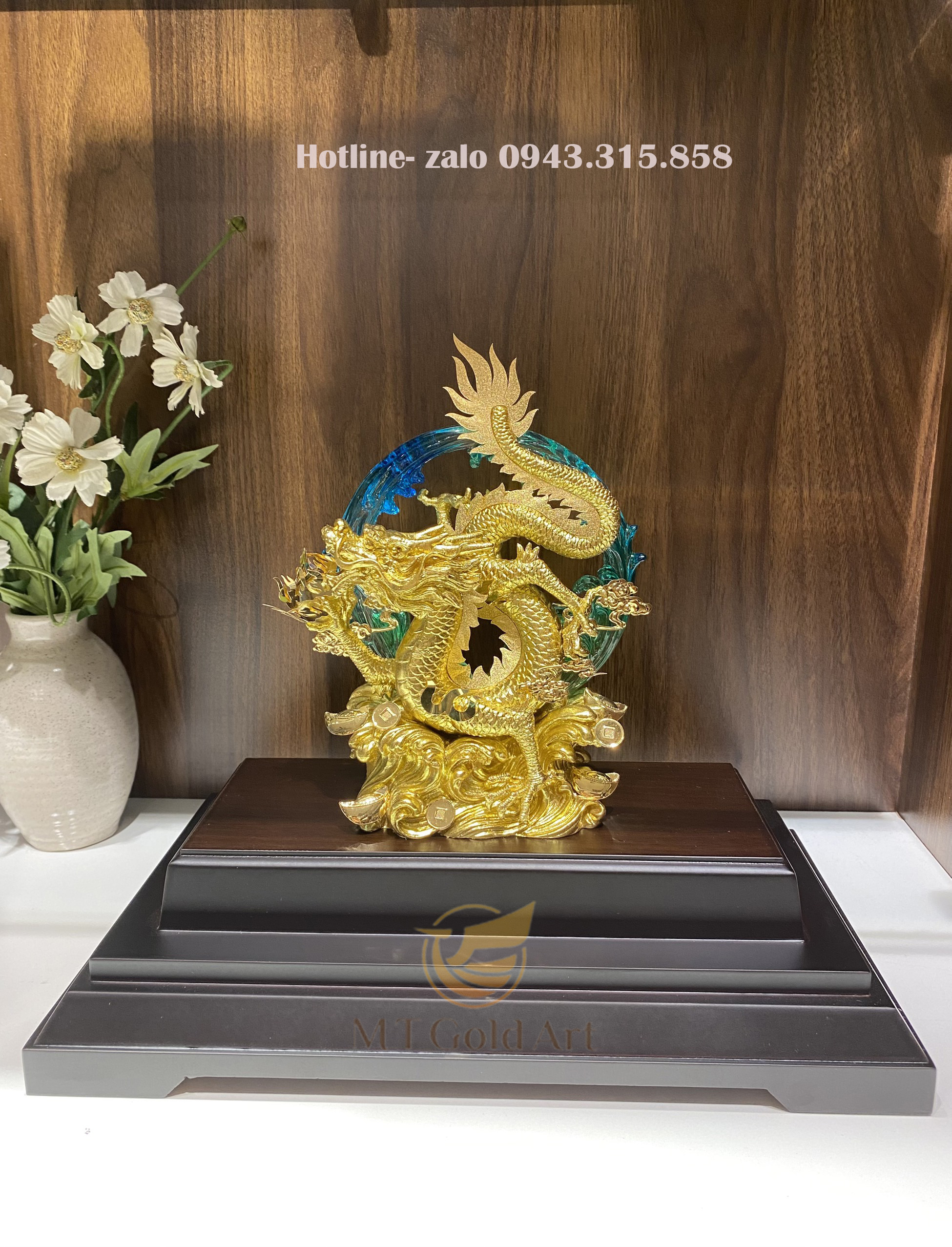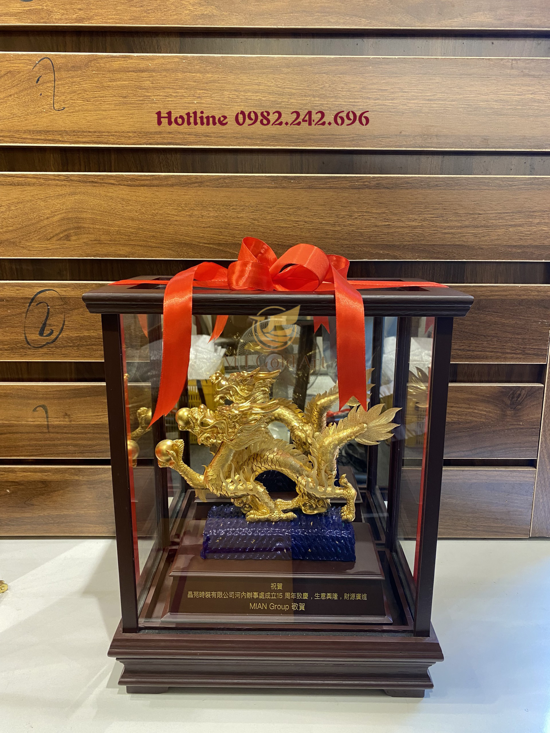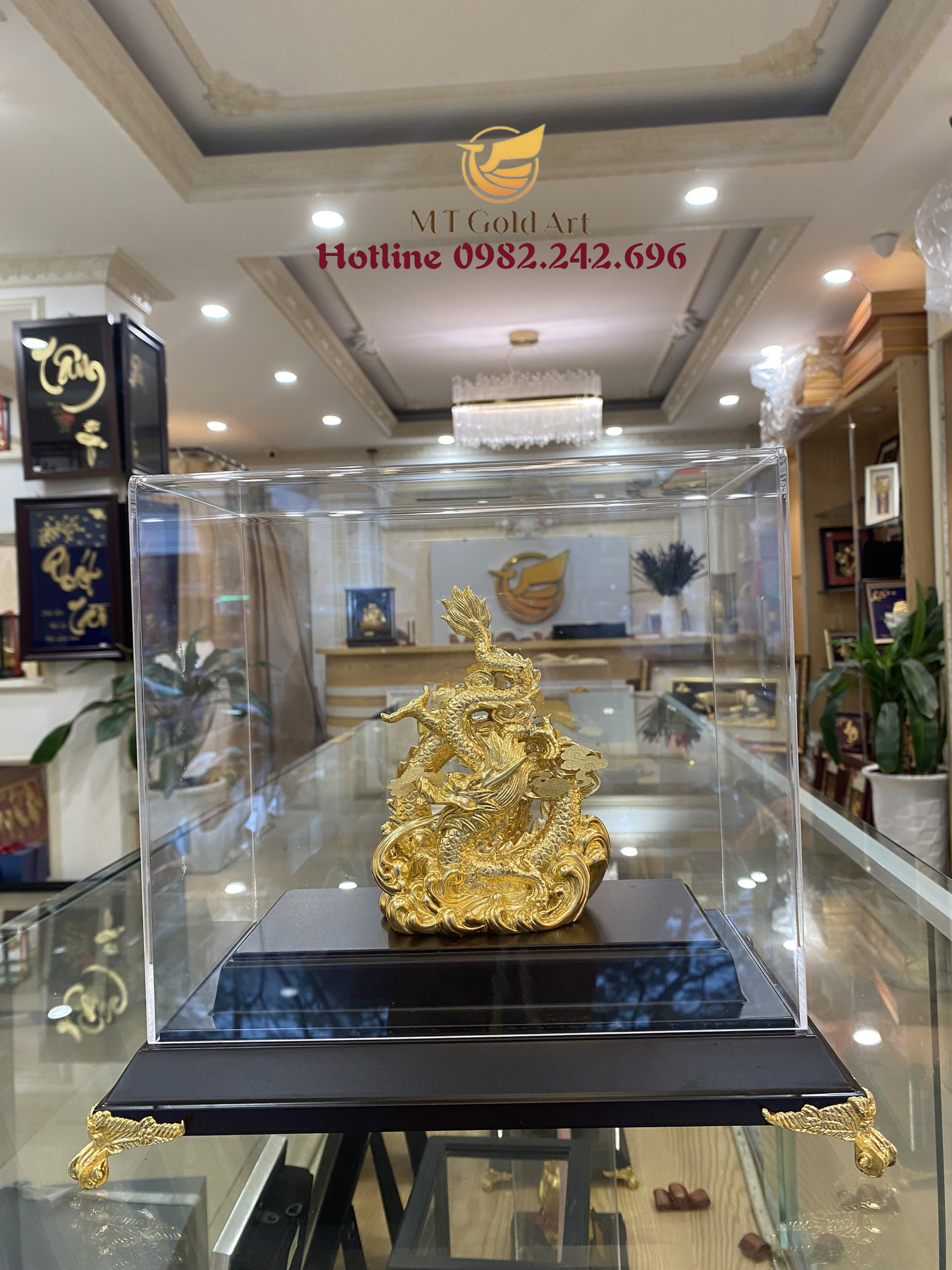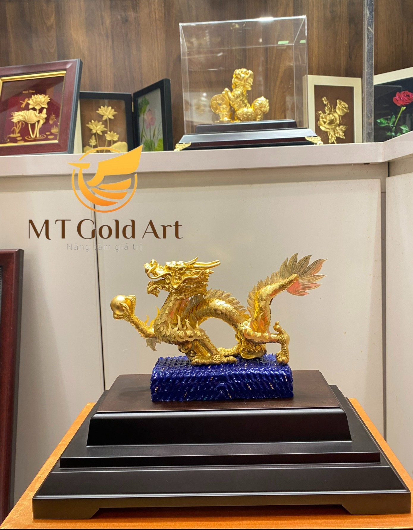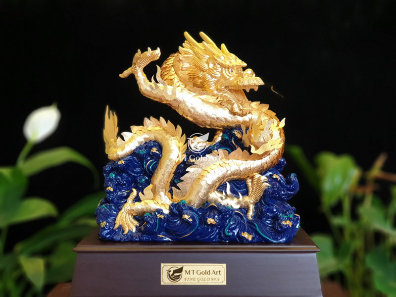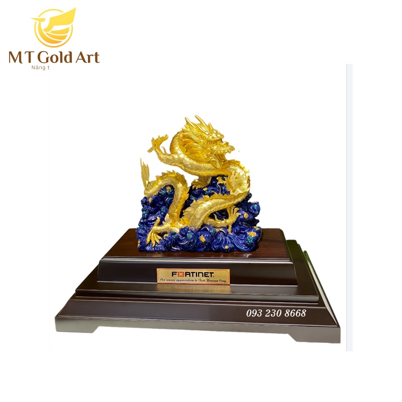 Tượng rồng được làm hoàn toàn thủ công được dát vàng 24k, món quà vô cùng sang trọng và ý nghĩa. MT Gold Art 0982.242.696 hỗ trợ khắc in logo theo yêu cầu, tranh được dát vàng vừa sang trọng vừa bền đẹp theo thời gian.