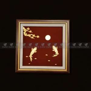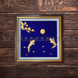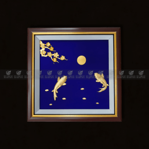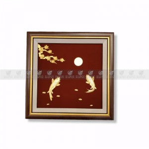 Tranh cá chép hoa mai dát vàng 24k (30x30cm)