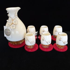 Bộ Bộ bình ly sứ pha lê đúc vàng lá 24k họa tiết hoa mai: bao gồm 1 bình và 6 ly. Đây là sản phẩm đặc biệt trong bộ sưu tập Pha Lê Sứ cao cấp. Sản phẩm không chỉ được tạo nên từ pha lê, gốm sứ cao cấp và vàng lá 24k.