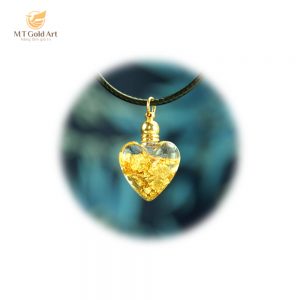 Ngày nay, trang sức đóng vai trò quan trọng trong vấn đề làm đẹp của nhiều chị em phụ nữ. Không chỉ mang giá trị về vật chất, trang sức còn giúp phái đẹp thể hiện được “gu” thẩm mỹ cao. Đặc biệt sợi dây chuyền sẽ chẳng thể thiếu đi những mặt dây chuyền giúp tô điểm cho các cô nàng xinh đẹp và nổi bật trong các buổi tiệc hay tại công sở. Mặt dây chuyền hình trái tim với các vẩy vàng 24k lấp lánh bên trong dung môi đặc biệt sẽ giúp bạn trông quyến rũ và tươi mới hơn.