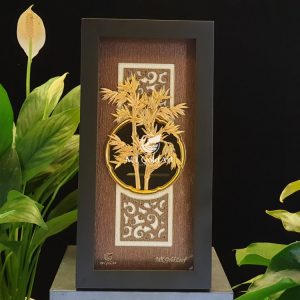Cây trúc là biểu trưng cho sự ngay thẳng, mạnh mẽ của người đàn ông. Đồng thời cây trúc cũng là biểu tượng cho sự bình an, cuộc sống ấm êm, xua tan điều không may. Bức tranh bình cây trúc được chế tác tinh tế hình ảnh cây trúc với lá mềm mại. Sau đó được dát lớp vàng lá 24k trên các chi tiết tạo thêm vẻ đẹp sang trọng cho bức tranh. Tranh Bình Trúc món quà độc đáo cho dịp đặc biệt như Tết, tân gia, sinh nhật.. thay lời chúc cuộc sống luôn đủ đầy, may mắn.