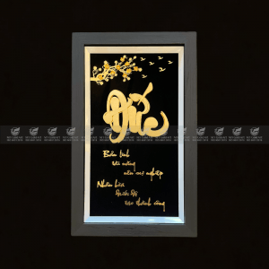 Từng chữ từng câu càng tăng thêm trang trọng và ý nghĩa khi được thể hiện bằng nghệ thuật thư pháp kết hợp cùng kỹ thuật chế tác vàng tinh xảo. Với nguyên liệu mang giá trị vĩnh cửu, bức thư pháp vàng vừa đại diện cho công đức ơn trên dành tặng con cháu, vừa thể hiện tấm lòng thành kính và biết ơn tột cùng của thế hệ sau.