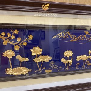 -Tranh hoa sen dát vàng là sản phẩm sử dụng hình tượng hoa sen, loài hoa có ý nghĩa đặc biệt trong nền văn hóa Việt. Người ta thường nhắc đến hoa sen như một loài hoa tao nhã, thanh khiết và luôn ngan ngát hương thơm. Hình ảnh hoa sen thường đi đôi với các đức tính quan trọng của con người.