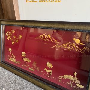 -Tranh hoa sen dát vàng là sản phẩm sử dụng hình tượng hoa sen, loài hoa có ý nghĩa đặc biệt trong nền văn hóa Việt. Người ta thường nhắc đến hoa sen như một loài hoa tao nhã, thanh khiết và luôn ngan ngát hương thơm. Hình ảnh hoa sen thường đi đôi với các đức tính quan trọng của con người.