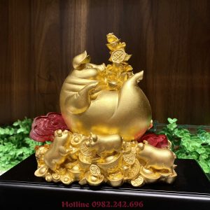 Tượng heo tiền tài dát vàng với hình ảnh chú lợn thong dong trên đống tiền vàng. Tượng mang ý nghĩa cuộc sống tiền tài, thảnh thơi, nhàn nhã. Heo hay dân gian gọi con lợn là loài biểu trưng của tài chính, mọi người hay dùng lợn đất đựng tiền tiết kiệm. Vì vậy tượng heo cũng là biểu tượng của giữ tiền của trong gia đình. Lợn biểu trưng cho sự phồn thực và sự nhàn nhã sung túc. Người ta còn dùng hình ảnh con heo đất như là một biểu tượng về tài chính. Ngoài ra, thủ lợn (đầu heo) là một món sính vật quan trọng trong một mâm cúng ở những buổi lễ long trọng và lễ nghi của người dân Việt Nam, quà tặng biểu trưng heo vàng sẽ là quà tặng ý nghĩa cho dịp tết.