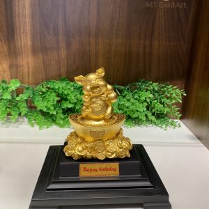 Tượng heo dát vàng 24k là sản phẩm quà tết độc đáo, sang trọng, ý nghĩa. Với hình ảnh chú lợn đang thong dong đi trên đống tiền là biểu trưng cho một năm mới nhiều tiền tài, may mắn, cuộc sống an nhiên. Chú heo là biểu tượng của tuổi hợi và được gọi là con lợn vàng mang đến may mắn, tài lộc. Tượng heo dát vàng 24k là món quà tết sang trọng, ý nghĩa tặng khách hàng, bố mẹ.