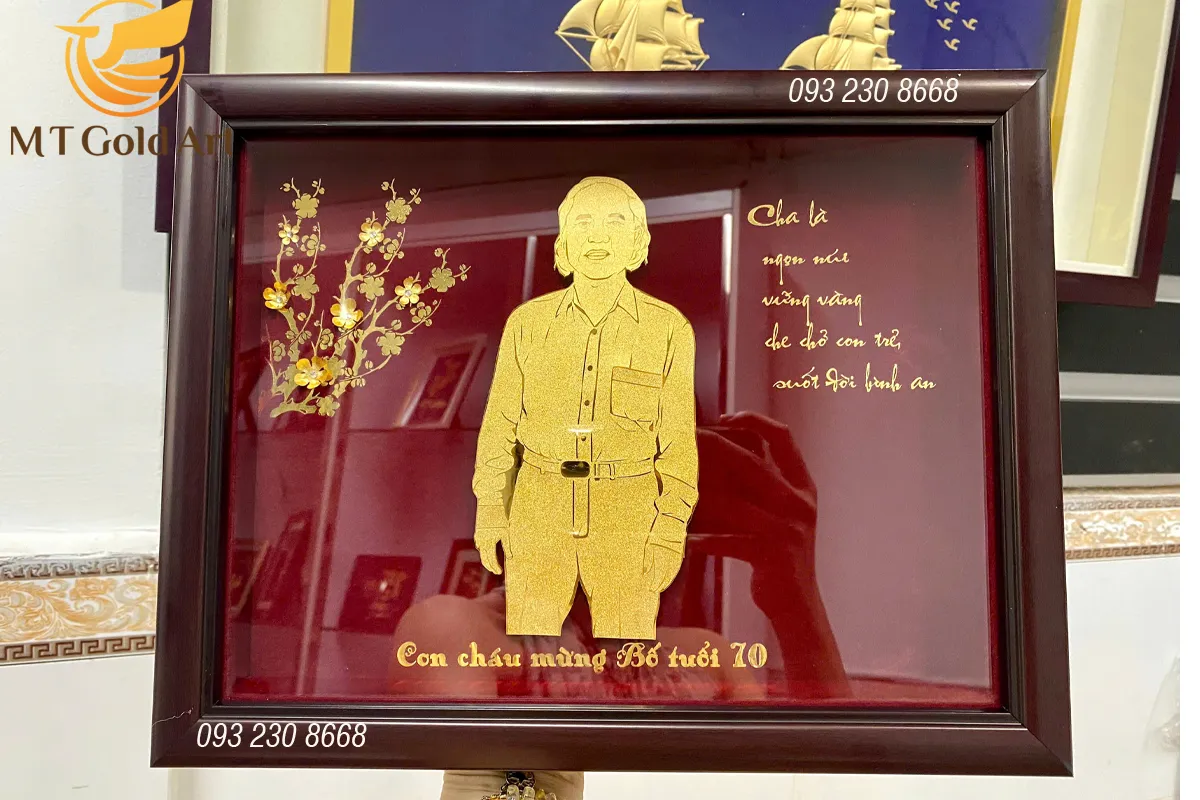 Để chúc mừng sinh nhật sếp, Chi nhánh MB Tân Phú đã lựa trọn một bức tranh chân dung dát vàng làm quà tặng.